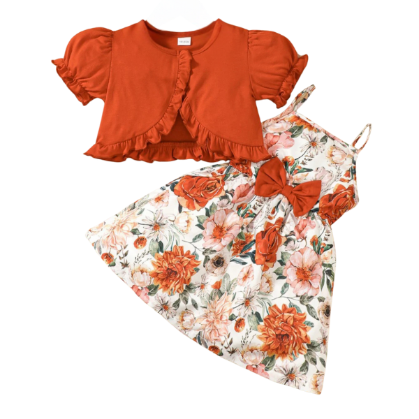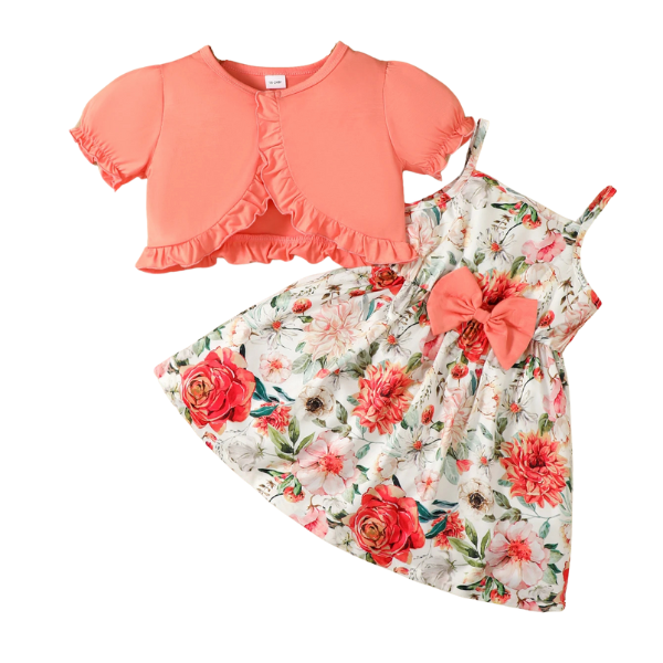 Spring Bloom 2-Piece Girls' Dress Set – Floral Dress with Matching Ruffle Cardigan