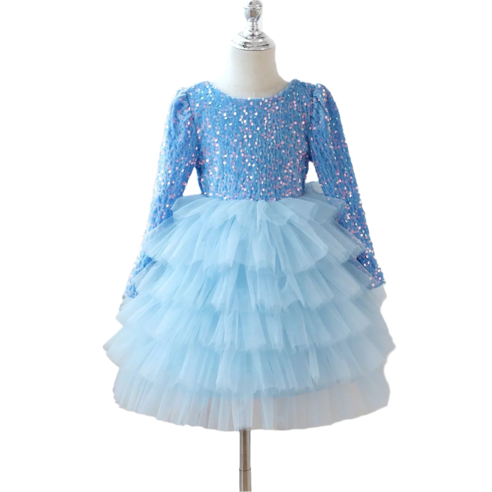 Available in Champagne Glow, Fairy Pink, and Crystal Blue, this layered tutu dress features a sequin-studded bodice, fluttery shoulder details, and a full twirl-worthy skirt that sparkles with every step.