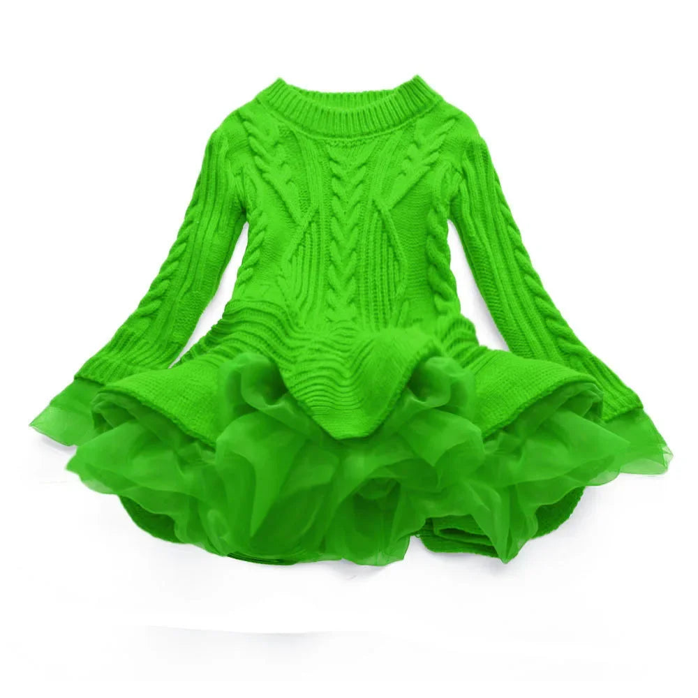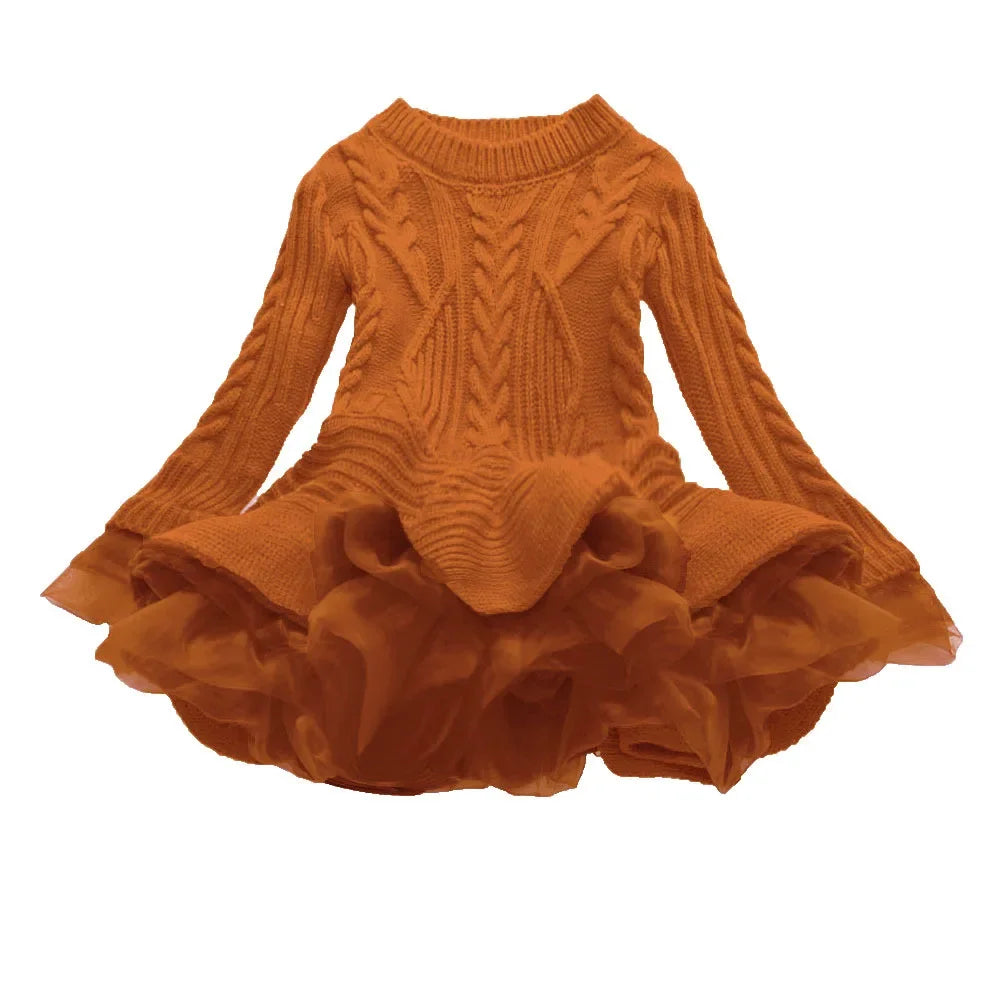 Knitted and Ruffled Girls Winter Dress