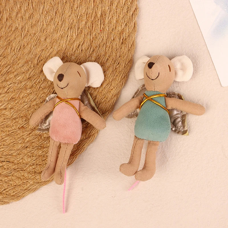 Meet our adorable Tiny Fairy Mouse (10.5 cm) — the sweetest little companion to spark imagination, storytelling, and whimsical play. Handmade with ultra-soft fabric, golden cross straps, and delicate fairy wings, this tiny treasure fits perfectly inside pockets, dollhouses, teepees, and travel bags.